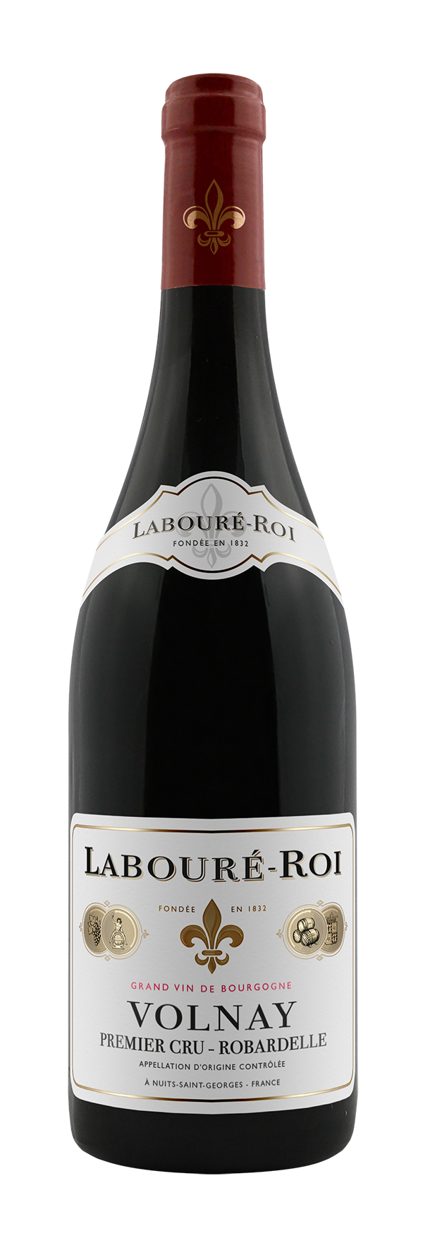 Le village de Volnay se trouve au Sud de Pommard, entre deux collines lui offrant une protection contre les vents, sur l’un des plus hauts points de la Côte de Beaune, en Bourgogne. La culture de la vigne remonte à l’époque gallo-romaine. Au Moyen-Âge, Volnay était une résidence d’été des Ducs de Bourgogne. La typicité des vins issus du Pinot Noir a été reconnue et mentionnée dès le début du 18ème siècle et le statut d’appellation a été établi en 1937. L’origine du nom Robardelle viendrait de la localisation de ce Premier Cru, pas très éloigné de l’ancienne route romaine et des carrières où les bandits de grands chemins (robarts) pouvaient s’échapper rapidement. Sols de marnes et calcaires sur des éboulis gravelo-limoneux. Exposition : Sud, Sud-Est. Altitude : 230 m à 340 m.